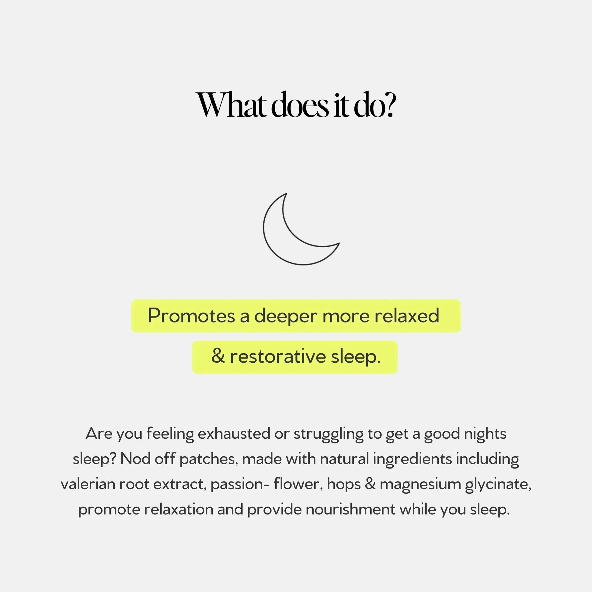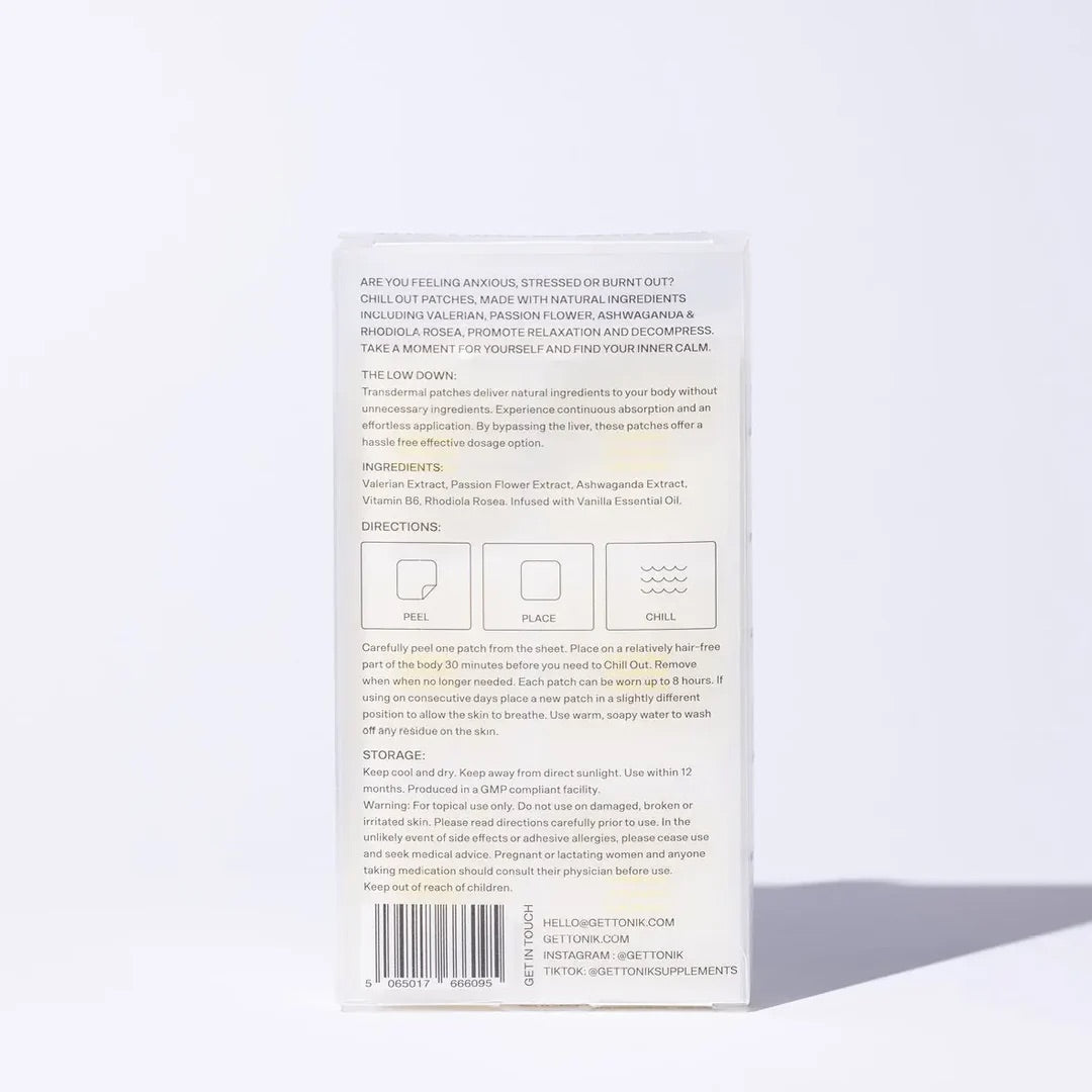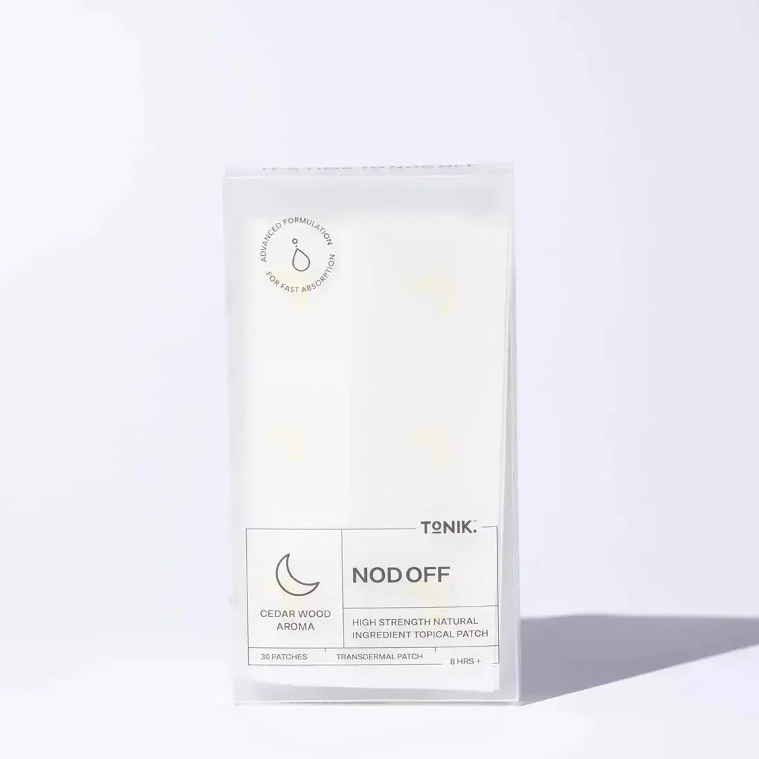 Tonik Nod Off Patches are formulated with natural ingredients like valerian root extract, passionflower, hops, and magnesium glycinate to support relaxation and help your body recharge overnight.